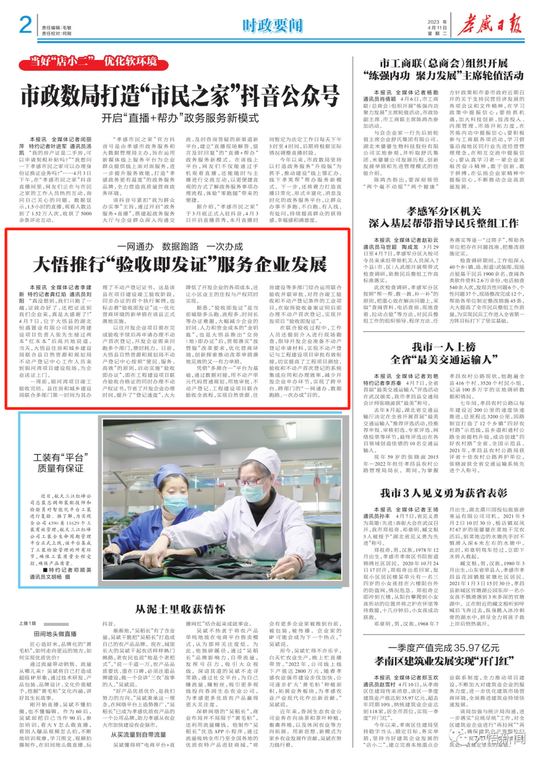“真没想到,我们只跑了一趟,证就办好了,还把证送到我们企业来,真是太感谢了!”4月7日,位于大悟县的湖北恒盛置业有限公司银河湾建设项目负责人张先生接过两本“红本本”后高兴地说道。当天,大悟县住房和城乡建设局联合县自然资源和规划局不动产登记中心工作人员来到银河湾项目建设现场,为企业送证上门。